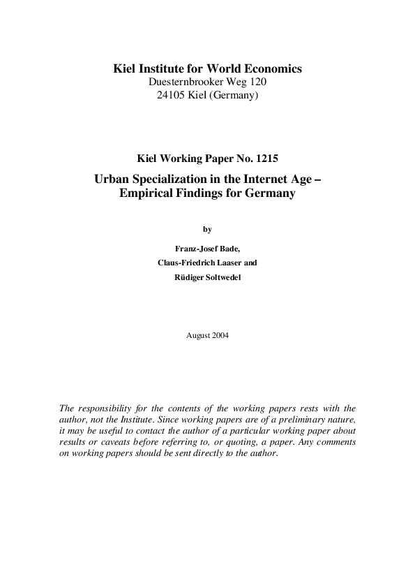 Urban Specialization in the Internet Age - Empirical Findings for Germany