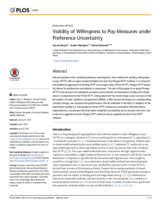 Recent studies in the marketing literature developed a new method for eliciting willingness to pay (WTP) with an open-ended elicitation format: the Range-WTP method. In contrast to the traditional approach of eliciting WTP as a single value (Point-WTP), Range-WTP explicitly allows for preference uncertainty in responses. The aim of this paper is to apply Range-WTP to the domain of contingent valuation and to test for its theoretical validity and robustness in comparison to the Point-WTP. Using data from two novel large-scale surveys on the perception of solar radiation management (SRM), a little-known technique for counteracting climate change, we compare the performance of both methods in the field. In addition to the theoretical validity (i.e. the degree to which WTP values are consistent with theoretical expectations), we analyse the test-retest reliability and stability of our results over time. Our evidence suggests that the Range-WTP method clearly outperforms the Point-WTP method.