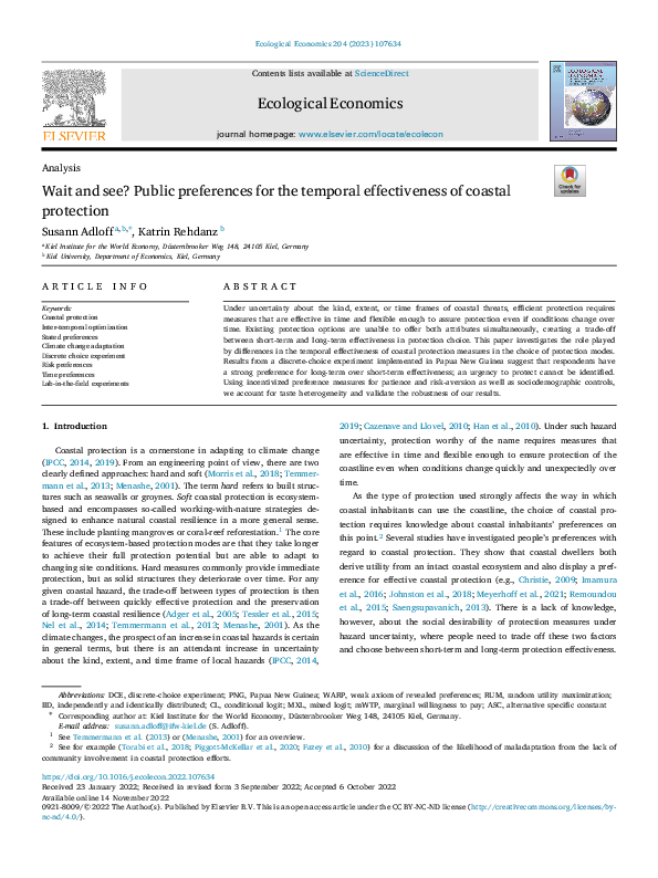 Wait and See? Public Preferences for the Temporal Effectiveness of Coastal Protection