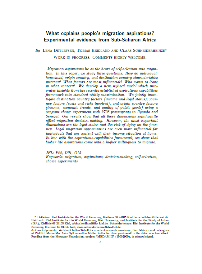 What explains people’s migration aspirations? Experimental evidence from Sub-Saharan Africa