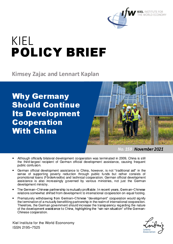 Although bilateral development cooperation officially ended in 2009, China is still the third largest recipient of Germany's official development assistance, a fact that often causes frequent public confusion. The authors argue that German payments to China are not "traditional aid" in the sense of poverty reduction through public funds. Rather, payments to China include profitable promotional loans and serve technical cooperation. In recent years, German-Chinese relations have shifted from development cooperation to mutually profitable international cooperation on equal footing. A premature exit from German−Chinese "development" cooperation would therefore be detrimental to both sides. The authors recommend that the German government should create more transparency about the nature of development assistance to China and thus highlight the "win-win" situation in German-Chinese cooperation.